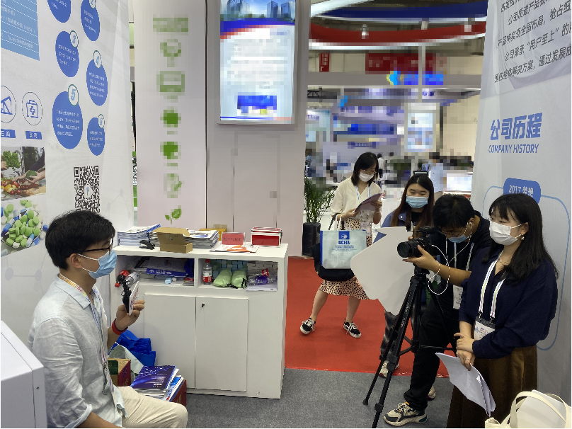 盤福生物項目經(jīng)理方子睿(圖左)為客戶介紹產(chǎn)品